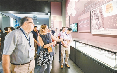 5日,参加2023中国(郑州)国际旅游城市市长论坛的嘉宾来到河南省博物院参观,了解华夏文明。