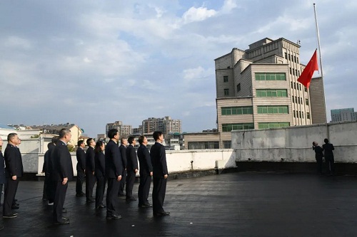 桐乡市税务局举行庄严的升国旗仪式。税务干部们表示,将坚决扛起首届“一带一路”税收征管合作论坛举办地的政治担当,提振“向上进取、向高攀登”的精气神、提升“走在前列、挑起大梁”的硬实力,高质量推进中国式现代化桐乡税务实践迈上新台阶。